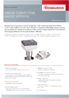 有源线性对流真空计 (APGX-H) 具有 1333 至 3 x 10-4 mbar 的宽测量范围。
